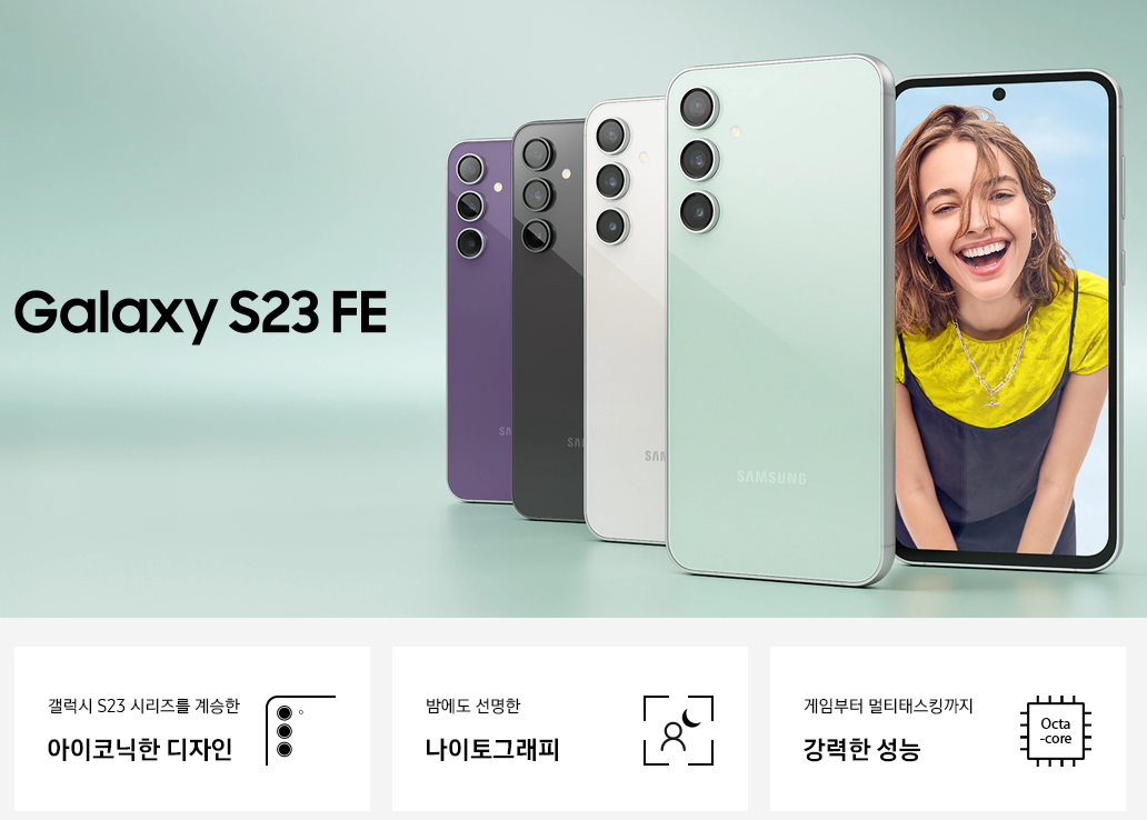 삼성전자는 최근 새로운 팬 에디션인 갤럭시 S23 FE, 갤럭시 탭 S9 FE, 갤럭시 버즈 FE 모델을 공개했습니다. 아무래도 그중 가장 많은 관심을 받고 있는 제품은 바로 스마트폰이라고 할 수 있는데요. 먼저 북미 시장에 출시되었던 바로 이 제품이 드디어 국내에 출시되었습니다. 어떤 성능의 모델인지 그리고 가격은 얼마인지 등에 대해 이와 관련된 소식을 전해드리려고 합니다.