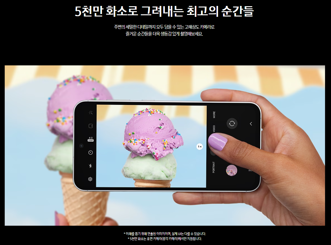 - 다양한 카메라 기능: 5000만 화소 메인 카메라, 1200만 화소 초광각 카메라, 800만 화소 망원 카메라를 탑재하여 다양한 촬영 환경에서 뛰어난 사진과 동영상을 촬영할 수 있습니다.