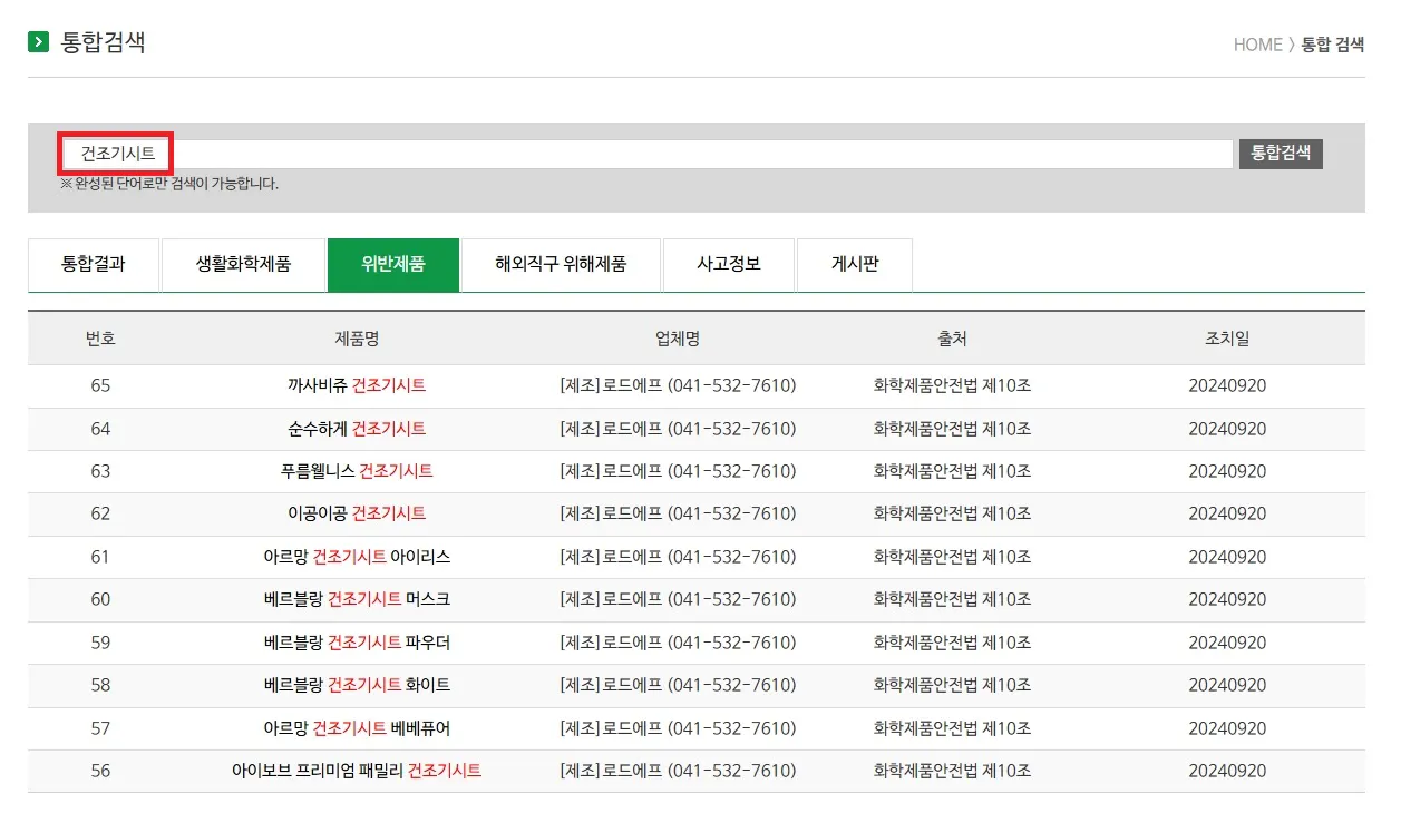 2. 위반 제품 목록 확인!