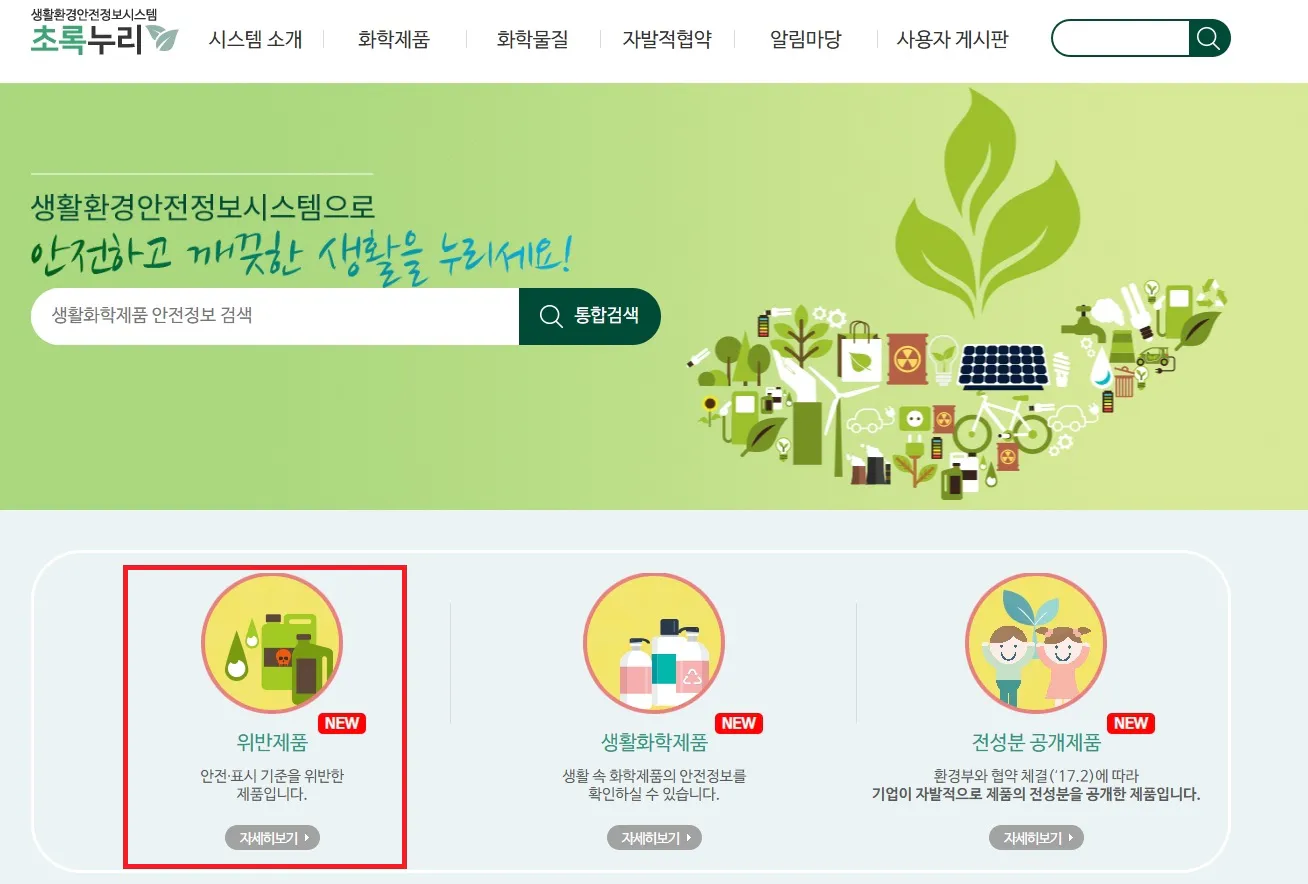 ▶ 초록누리 위반제품 조회하기 ([https://ecolife.me.go.kr])