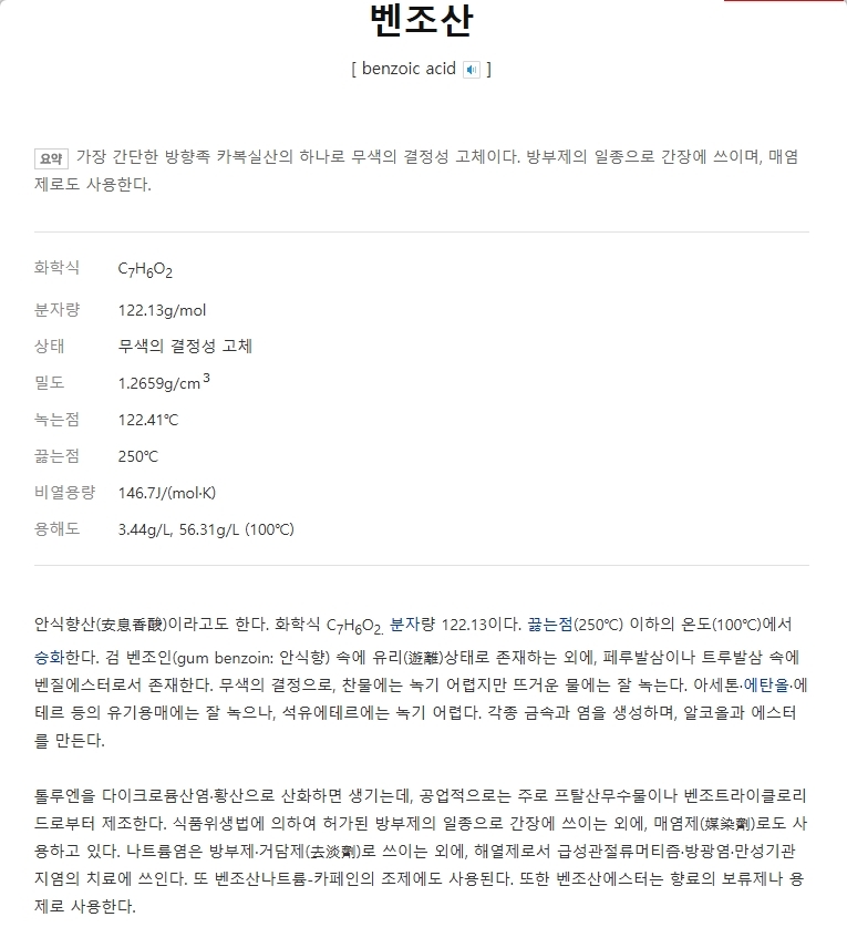 벤조산, 너 정체가 뭐니? 부작용은?!