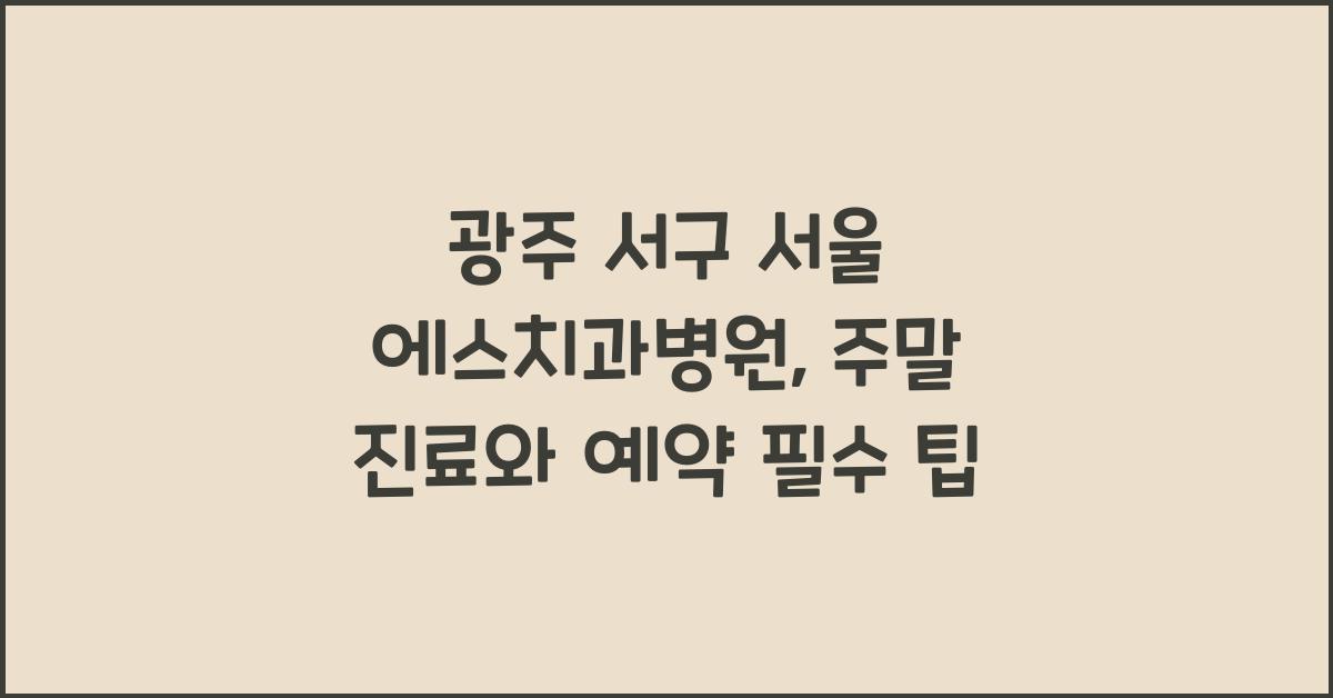 📅 광주 서구 서울 에스치과병원 진료 예약 및 시간 안내