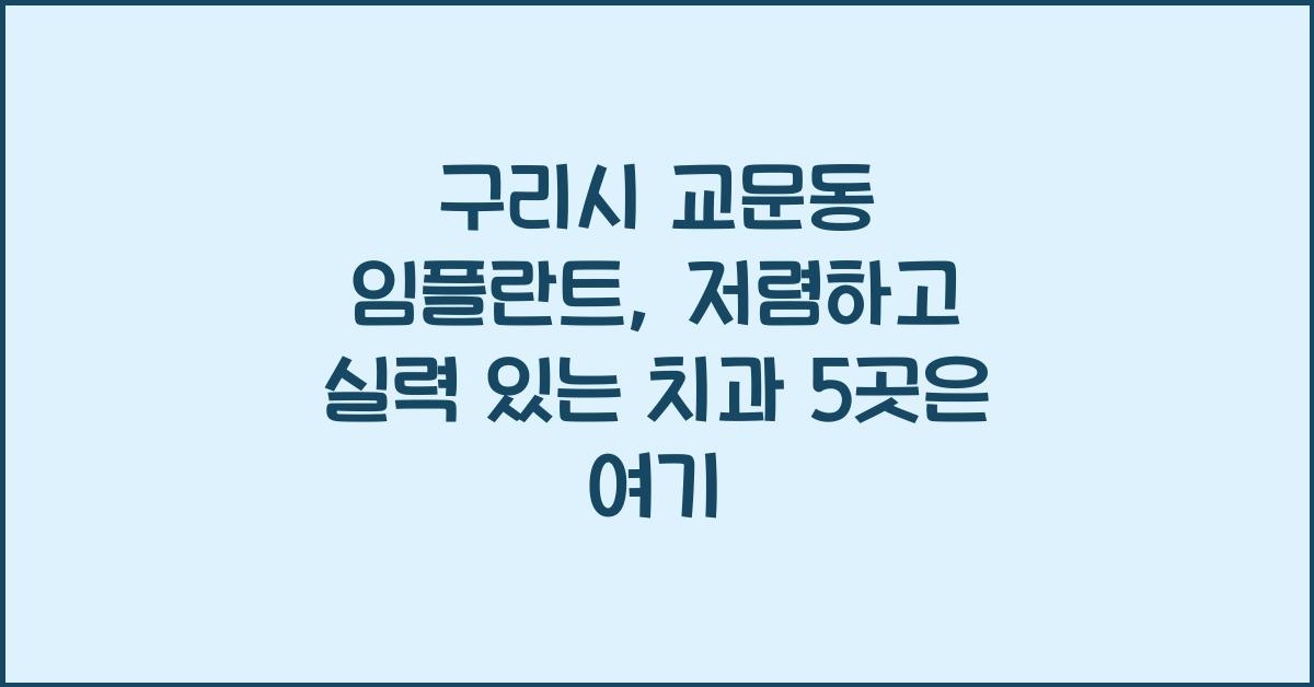 구리시 교문동 임플란트: 최고의 치과 찾기