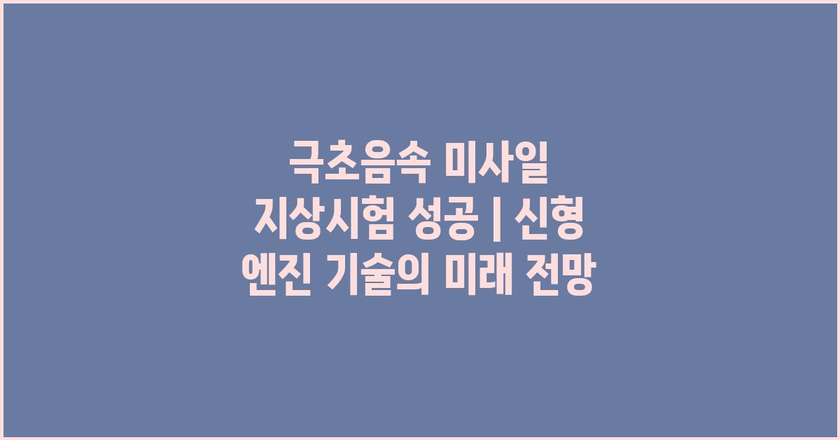 📌 극초음속 미사일 지상시험의 성공적인 결과
