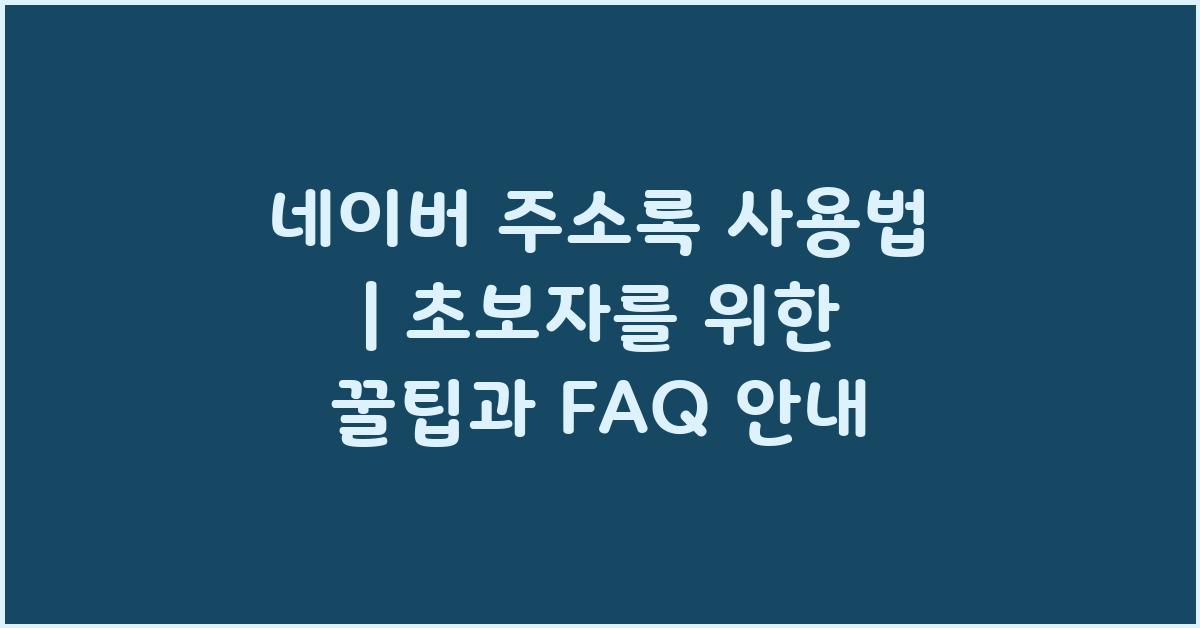 네이버 주소록 사용법 | 초보자를 위한 꿀팁과 FAQ 안내