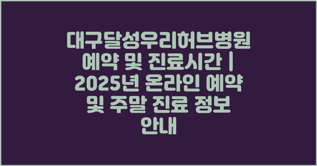 📅 대구달성우리허브병원 예약 및 진료시간 안내