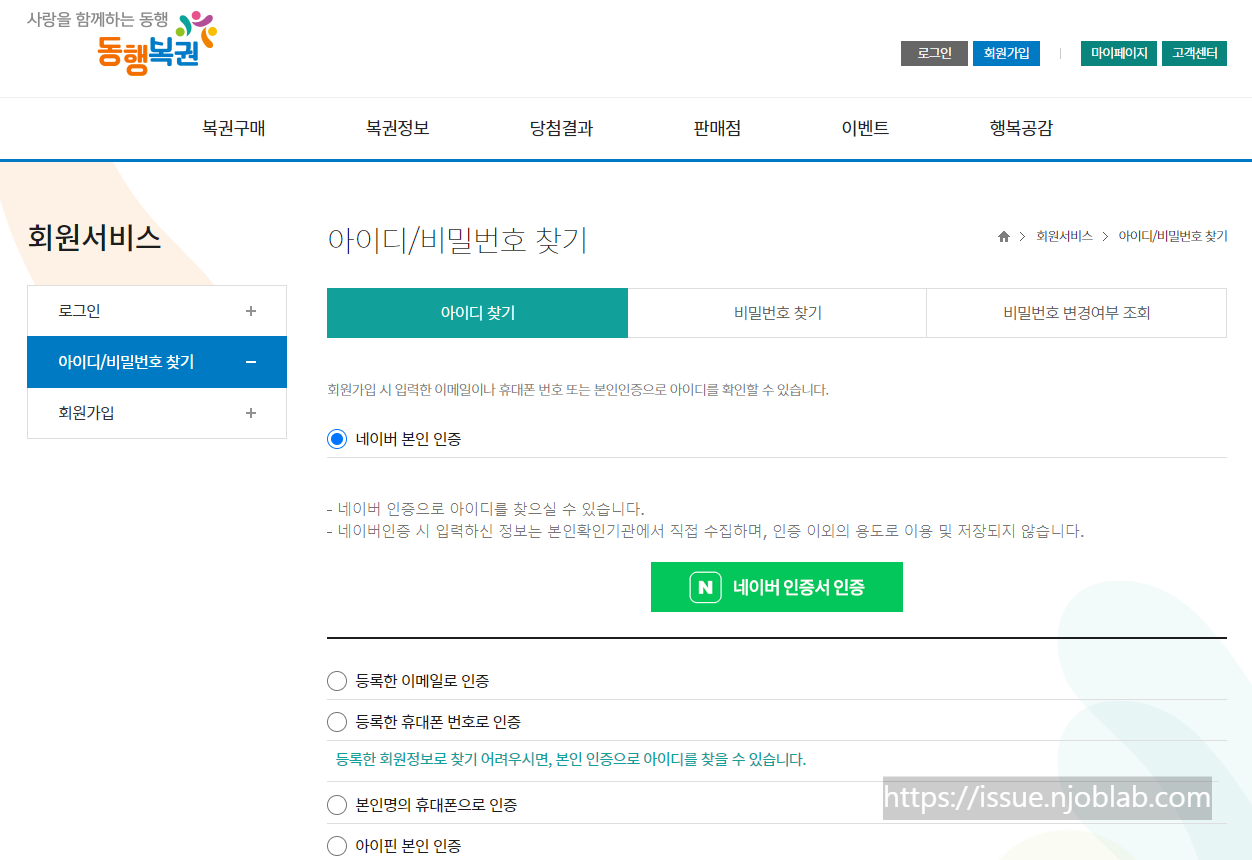 - 버튼을 눌러 이동한 페이지에서 본인 아이디 입력 후 본인인증을 진행합니다.