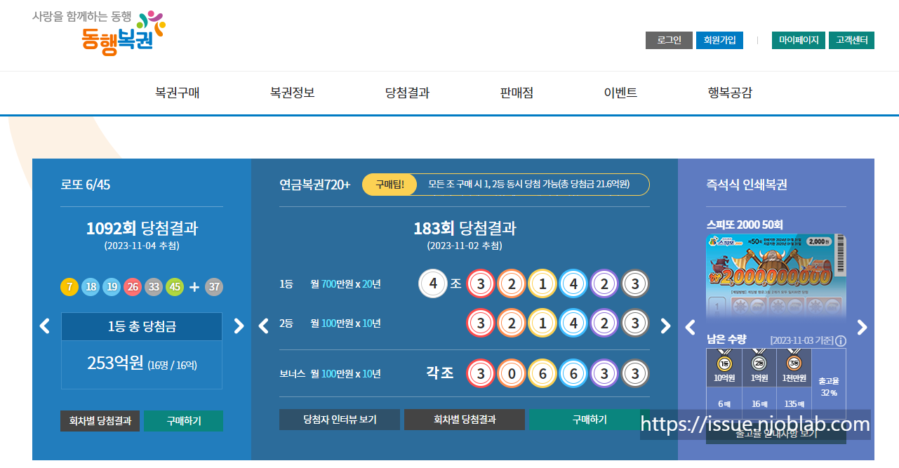 - 위 링크버튼을 눌러 "동행복권 홈페이지"에 접속합니다.