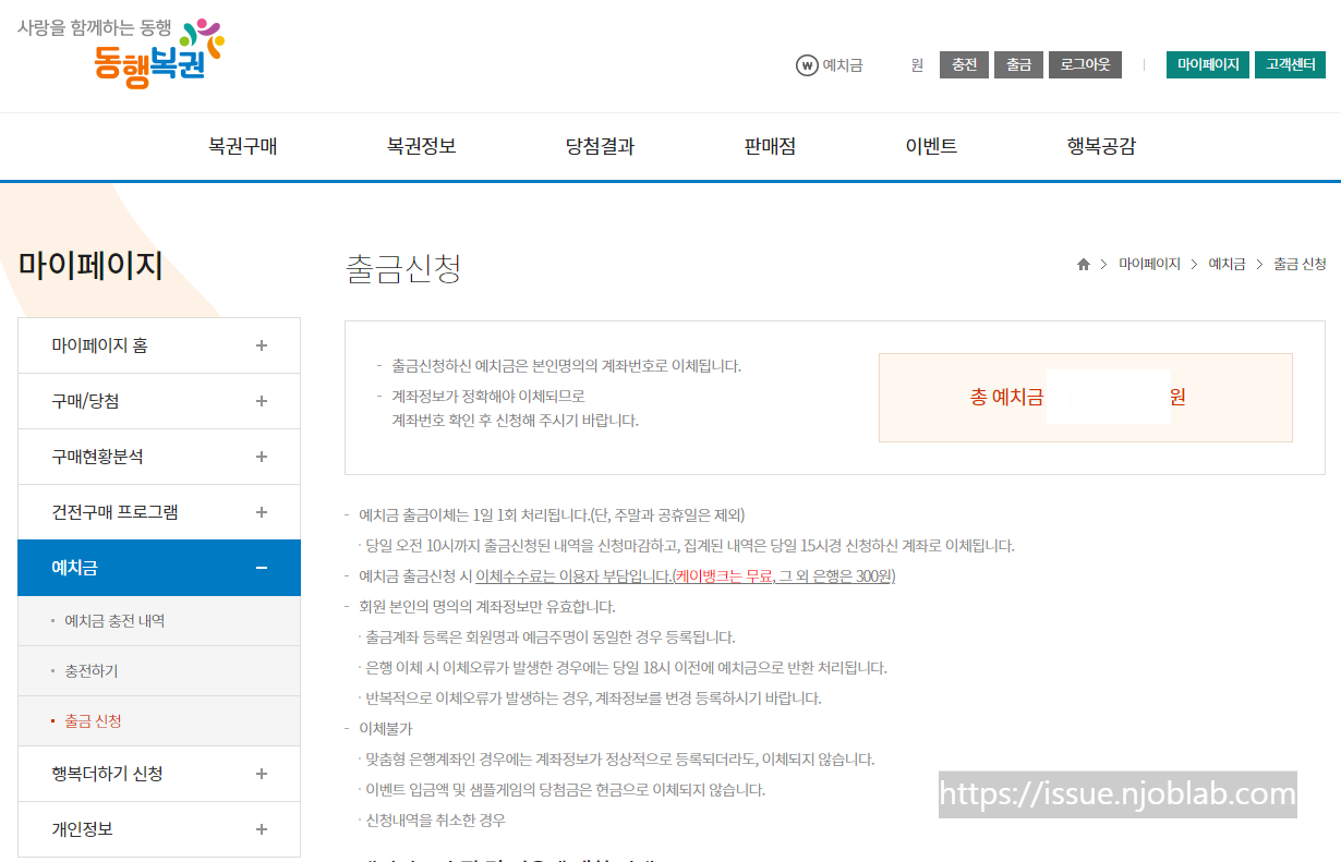 이번 동행복권 개인정보 유출 사건으로 인해 많은 회원분들이 예치금 출금을 고려하실 수 있습니다. 하지만 출금은 일정한 절차를 따라야 하며 입금은 평일에만 이루어지는 점을 유의해주시기 바랍니다.