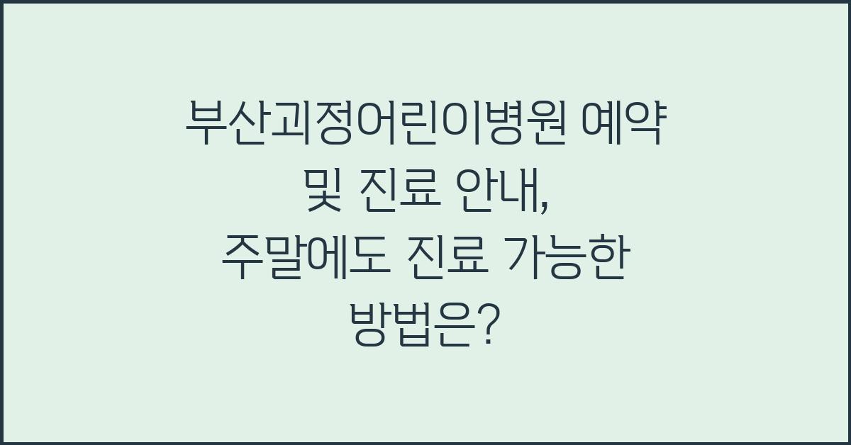 부산괴정어린이병원 예약 및 진료 안내, 주말에도 진료 가능한 방법은?