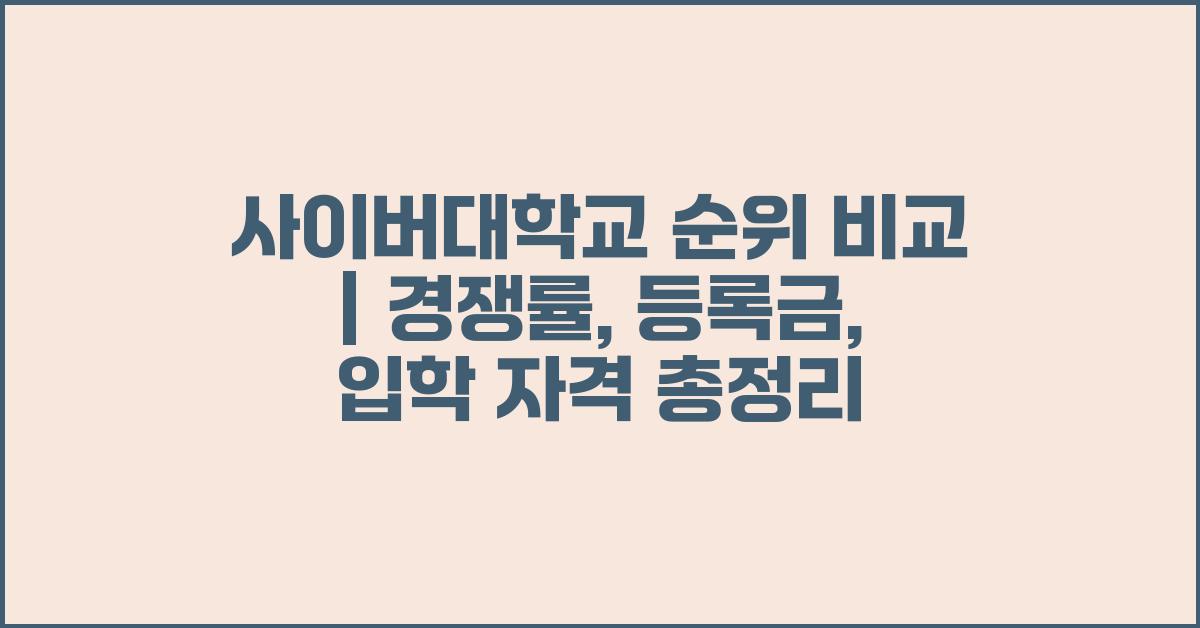 위의 표는 사이버대학교 순위 비교 | 경쟁률, 등록금, 입학 자격에 대한 간단한 요약입니다. 여러분의 선택에 많은 도움이 되셨으면 합니다!