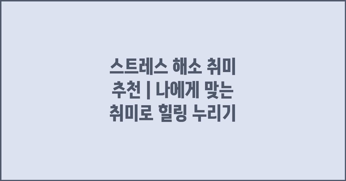 💆♂️ 스트레스 해소 취미 찾기: 나에게 맞는 방법 찾기