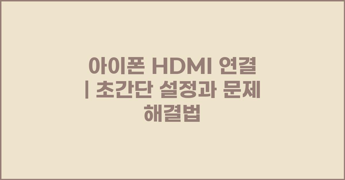 이번 가이드에서는 아이폰의 HDMI 연결을 위한 설정 방법과 자주 발생하는 문제 해결 방법에 대해 상세히 설명할 것입니다. 특히 아이폰 HDMI 연결 | 간편한 방법과 설정 가이드를 통해 여러분이 필요로 하는 정보를 쉽게 찾을 수 있도록 도와드릴게요. 그럼 시작해 보겠습니다!