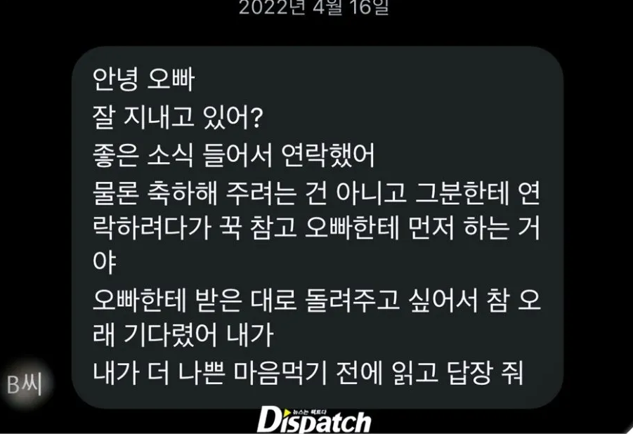- 전 여자친구 B씨는 트리플스타와 4개월 정도 교제했으나 갑작스러운 잠수 이별을 당했다고 주장했습니다.