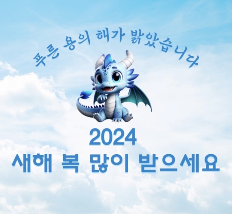 - 2024년 갑진년, 청룡의 해가 밝았습니다. 청룡의 기운으로 힘차게 도약하는 한 해를 보내시기 바랍니다.