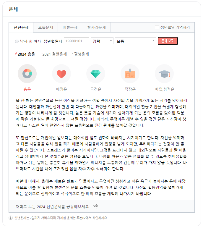 1. 다음 무료 신년운세