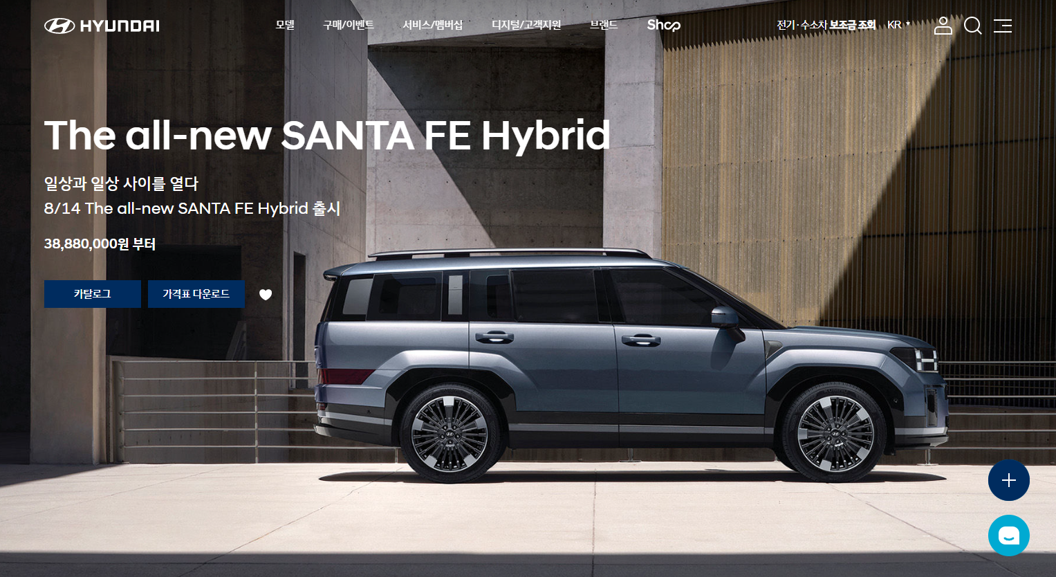 출처: 현대자동차 공식홈페이지(https://www.hyundai.com/kr/ko/e/vehicles/the-all-new-santafe-hybrid/intro)