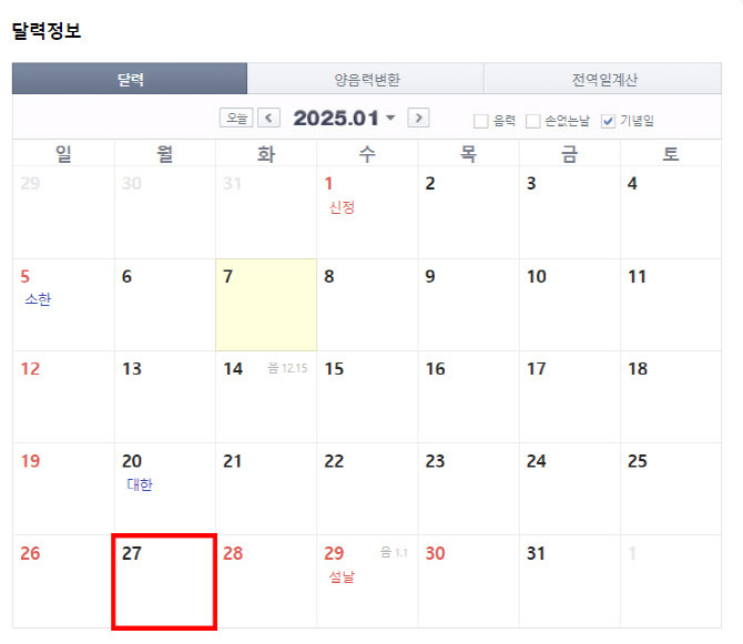 [1] 한겨레 - 연차 1개만 쓰면 9일 연휴?…1월27일 임시공휴일 지정 검토 (https://www.hani.co.kr/arti/politics/politics_general/1176811.html)