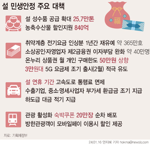 [2] 뉴데일리 - 정부, 설 명절 '역대 최대' 26만 톤 성수품 공급 … 할인 지원엔 ... (https://www.newdaily.co.kr/site/data/html/2025/01/09/2025010900119.html)